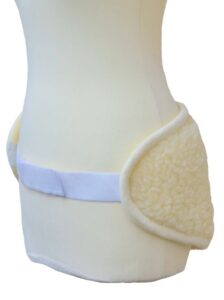 – selänlämmitin tarrakiinnityksellä, jossa toinen puoli merinovillaa ja toinen fleecea
