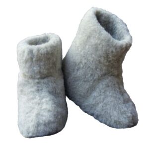 Kuvan mukaiset villatossut. Tossujen pohjassa pitopohja.
